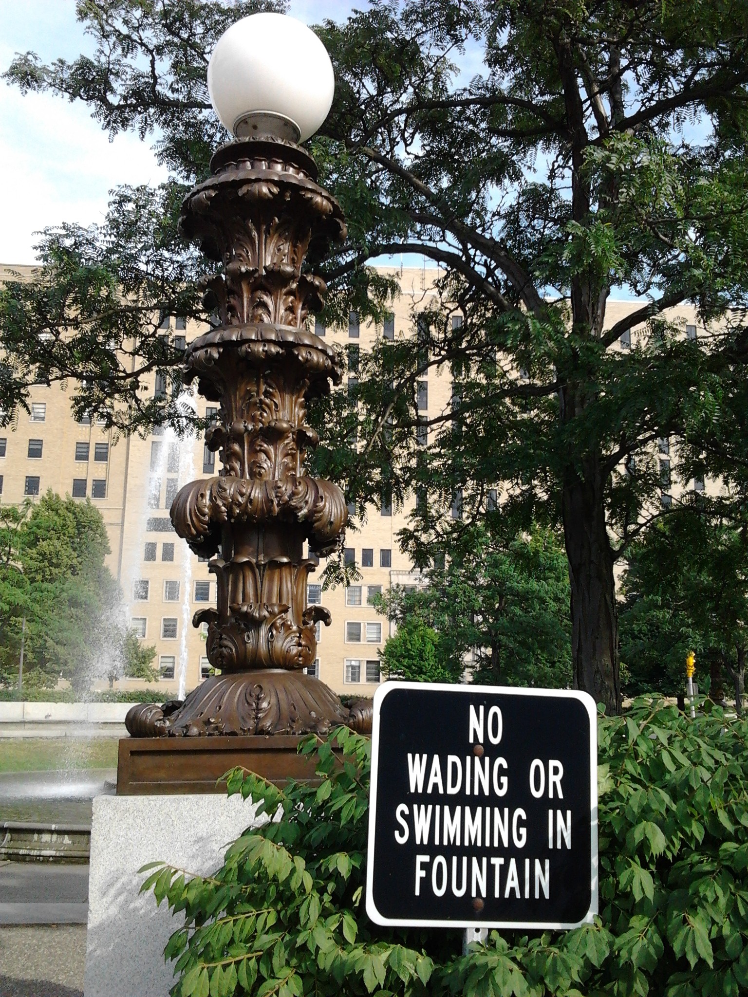 It’s been hot in Buffalo this week. Maybe you’ve driven, biked or walked down Delaware Avenue and thought, “I really want to hop in the fountain at Gates Circle. But then, out of the corner of your eye, you notice the sign….NO WADING OR SWIMMING IN THE FOUNTAIN.