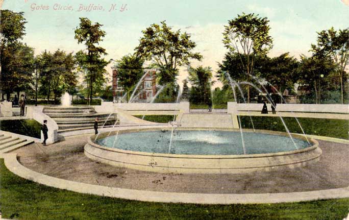 Gates Circle was originally known as Chapin Place, as it is where Chapin Parkway originates. The circle was renamed in 1902, after being completed because of the generosity of Mrs. Charles W Pardee, a member of the Gates Family. The Gates Family lived at 938 Delaware Avenue (between Bryant and Hodge). Mr. Pardee was president of Buffalo General Hospital.