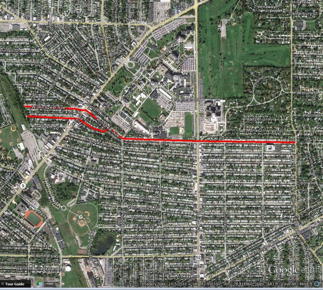 winspearWinspear Avenue and Northrup Place are located in the University Heights neighborhood of North Buffalo.    Winspear Avenue runs between the former Erie Railroad corridor across Main Street to Bailey Avenue.  Northrup place runs parallel to W. Winspear, meeting up with Winspear just across Main Street.