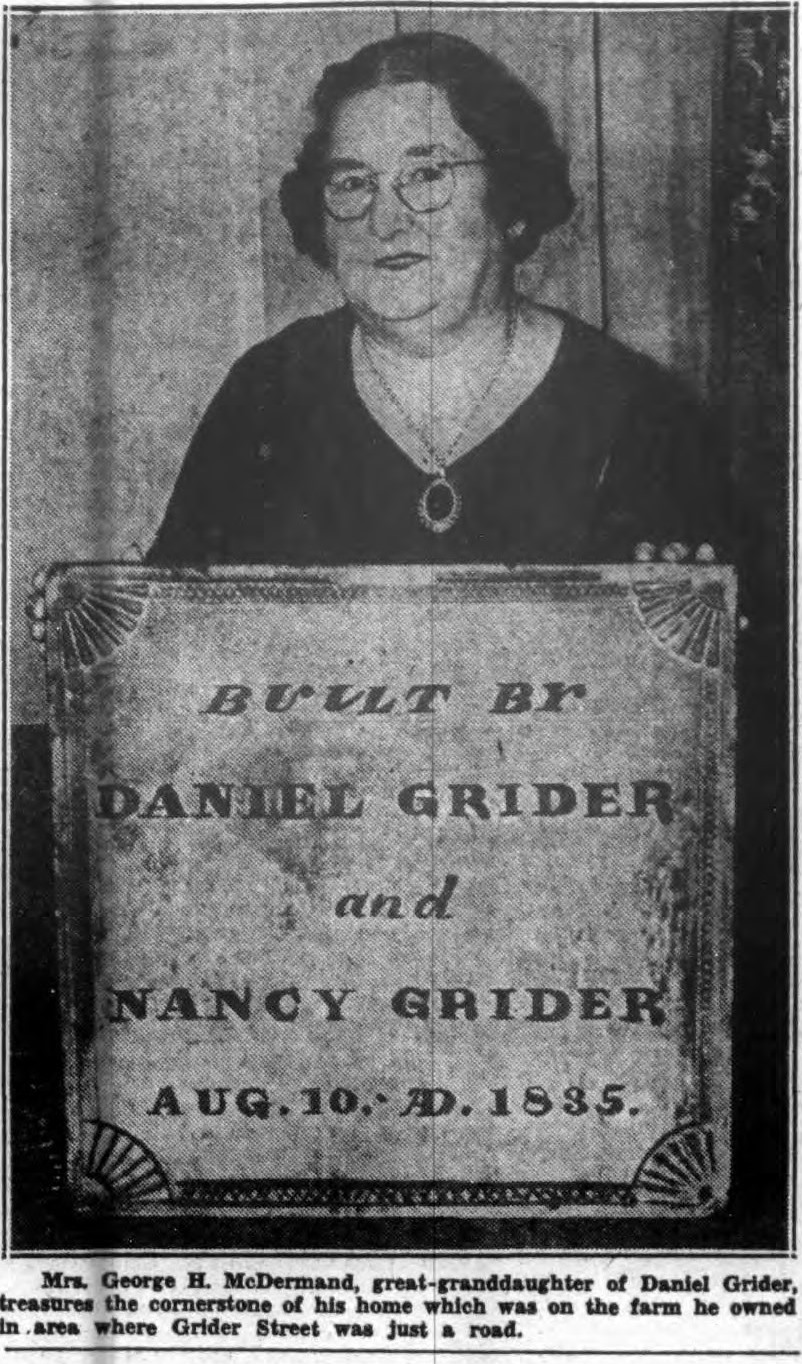 Source: “Grider street Recalls Name of Land Owner” Courier Express Feb 4 1940 Sec 5 p 4