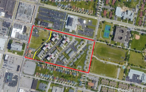In 1955, Buffalo Common Council designated the 160-acre Ellicott District Redevelopment Project Area to be totally cleared and rebuilt except for religious and education buildings. This was the first Urban Renewal project in New York State – designated with project number NYR-1. In December 1957, a $10 Million Capital Grant (approximately $92 Million in 2020 dollars) was funded to begin to acquire the 1050 parcels and relocated residents and businesses. In 1961, a $600,000 ($5 Million in 2020) addition was added to PS 6 and $450,000 ($4 Million in 2020) in renovations were completed a the Former Technical High School (at the time, it was Clinton Junior High). 25 acres were set aside for the $1.5 Million ($13 Million in 2020) Elliott District Recreation Center, which became JFK Park.